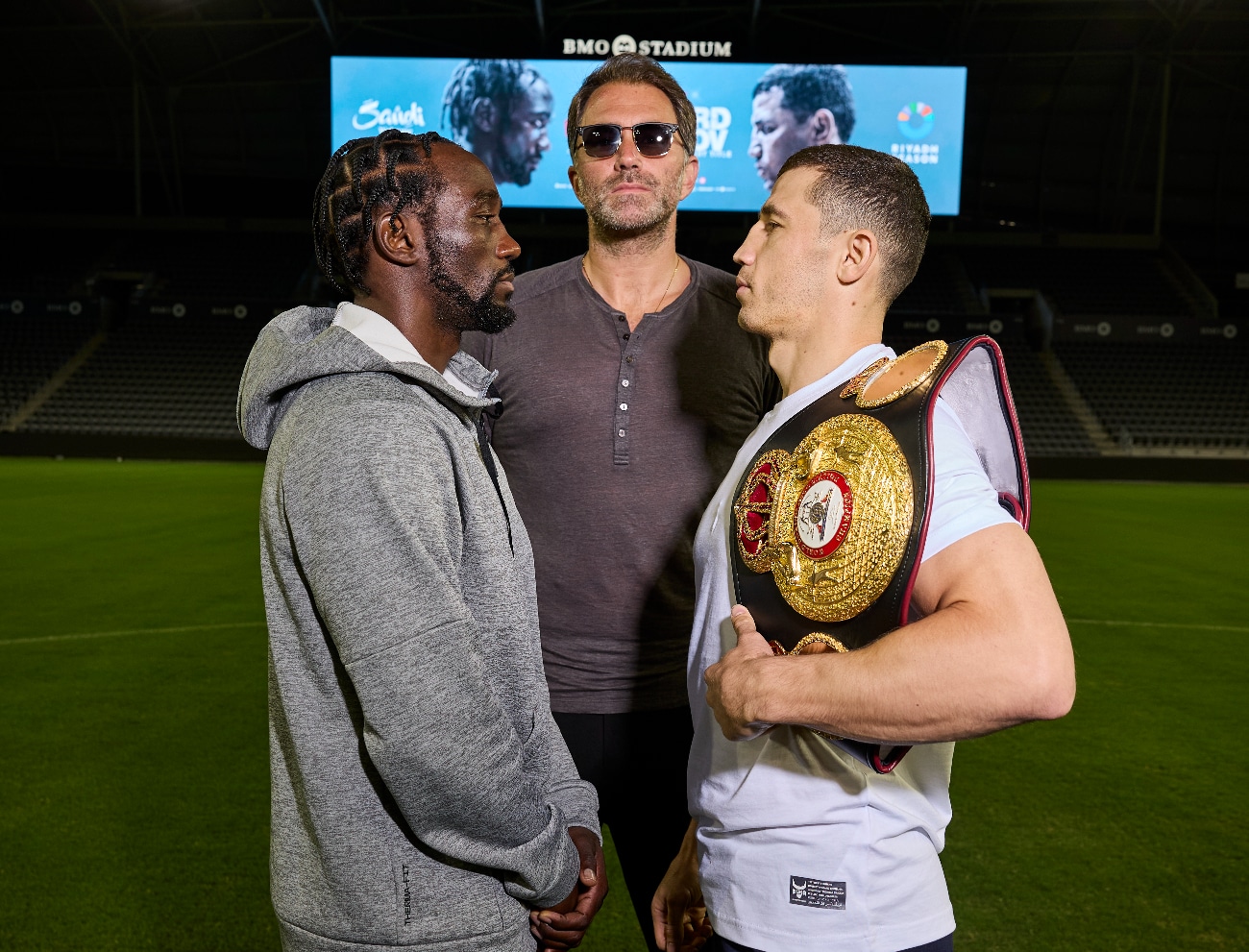 クロフォード(40勝0敗、31KO)は147ポンドから154ポンドに7ポンドアップし、この階級での初戦で無敗のマドリモフ(10勝0敗1分け、7KO)の王座を奪い、さらにさらに階級を上げることを目指している。